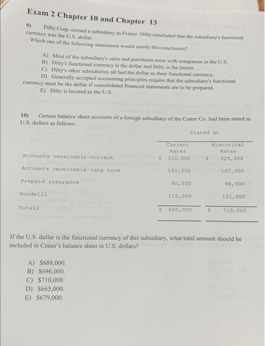 Which one of the following statements would justify this conclusion. Exam 2 Chapter 10 and Chapter 13 9 Dilty Corp owned a subsidiary in France. What must Dilty do to ready the.